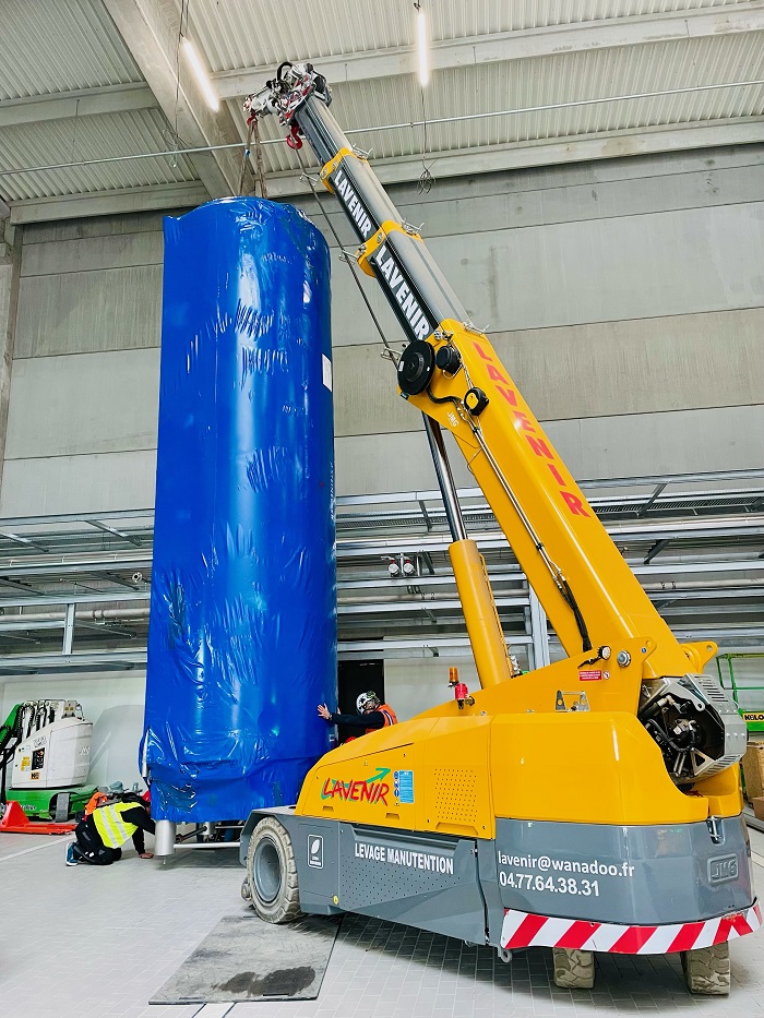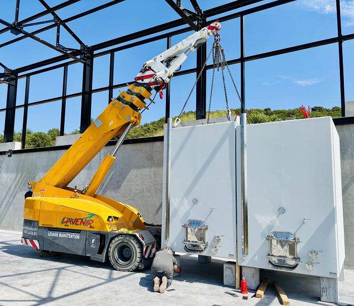 Mini Grue Mobile Electrique 13 Tonnes avec 6.70 mètres de flèche, pour un encombrement de 1.85 m en largeur, de 2.00 m de hauteur, et 4.50 m de long. Possibilité Fléchette hydraulique longueur 2.70 m.